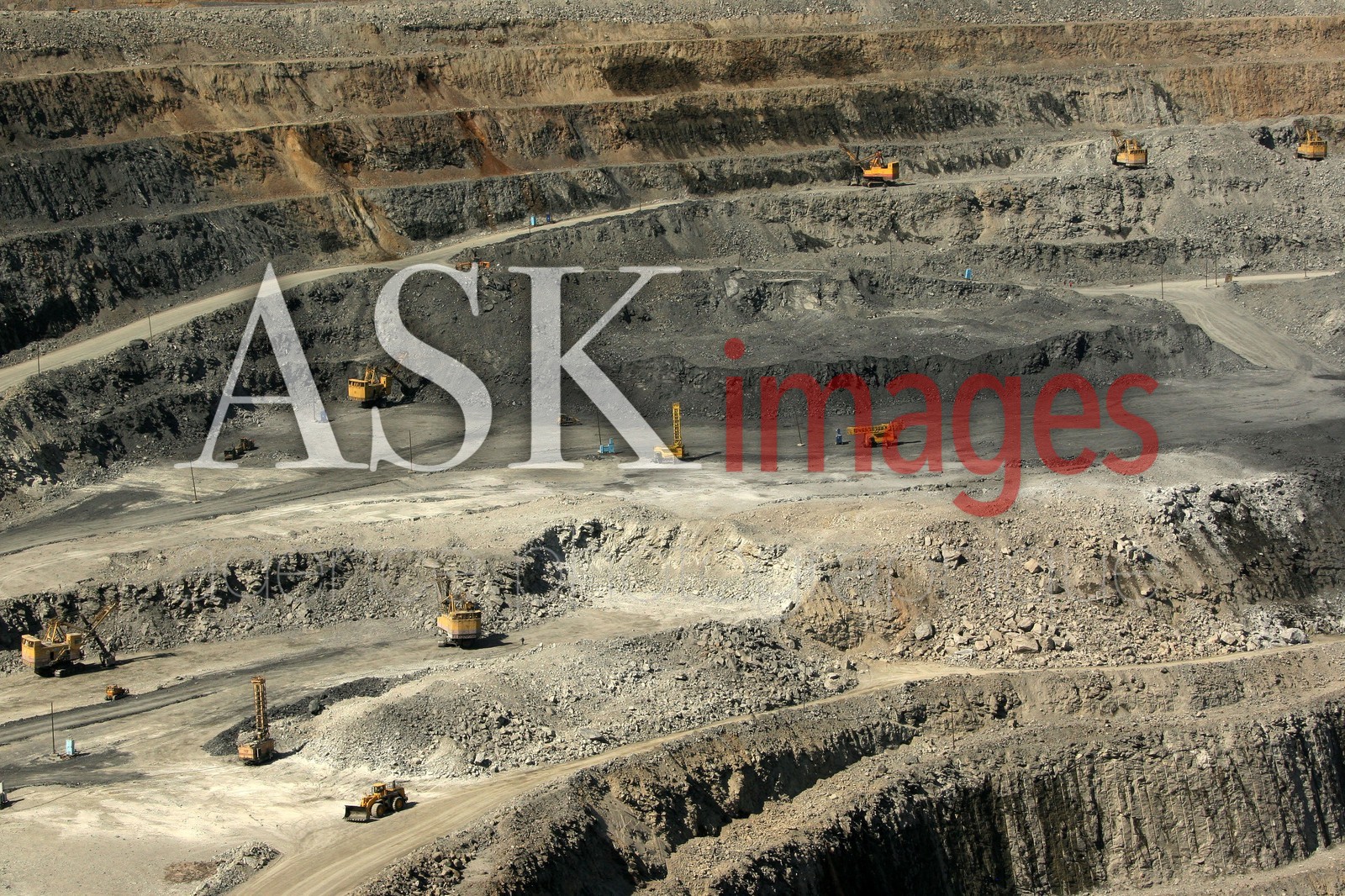 DescriptionMining vehicles work at the 400-meter deep open pit of the Olimpiada golden mine, Severo-Yeniseisky district, Krasnoyarsk region, 500 km north of Krasnoyarsk, Olimpiada mine is owned by Russia's biggest gold producer, Polyus Gold, one of the Top Five gold mining companies in the world.