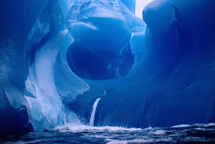 Sculptured rare Blue Iceberg, compressed & shaped by the sea. Antarctica.