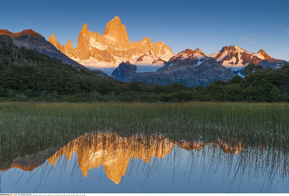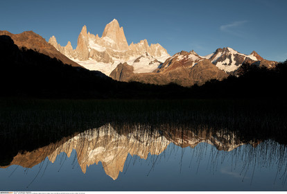 ARGENTINA / Patagonia / Santa Cruz / Los Glaciares National Park / El Chalten / View across little laguna to Fitz Roy at sunrise..© Oliver Bolch / Anzenberger Argentina, Patagonia