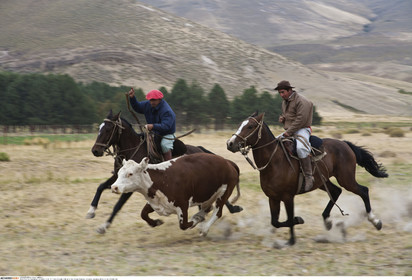 ARGENTINA / Patagonia / Santa Cruz / Los Glaciares Nationalpark / Estancia Nibepo Aike / Gauchos at cattle drive ..© Oliver Bolch / Anzenberger Argentina, Patagonia