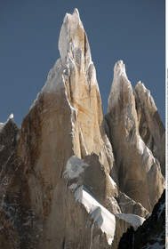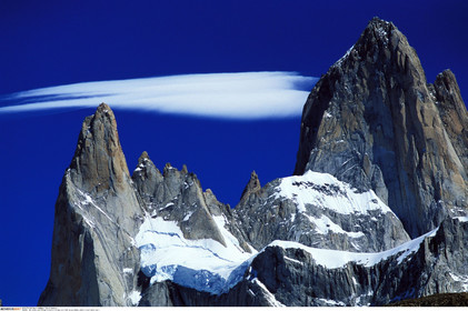 ARGENTINA - Santa Cruz, Parque Nacional Los Glaciares.Cerro Torre (3.133 mts) is one of the worlds most coveted peaks because of its difficulty. The top of the mountain has a mushroom of rime ice, formed by the constant strong winds, increasing the difficulty of reaching the actual summit. Cerro Torre was featured in the 1991 film Scream of Stone, directed by Werner Herzog .© Pablo Castagnola / Anzenberger Argentina, Patagonia
