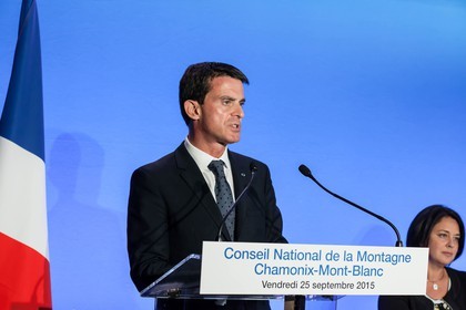 French 1er Minister Manuel Valls during his trip to Chamonix for the Conseil National de la montagne Manuel Valls a Chamonix