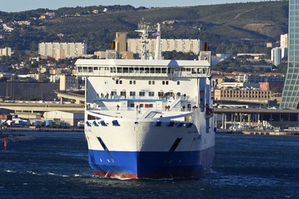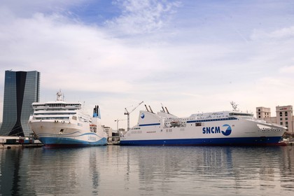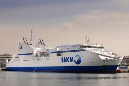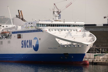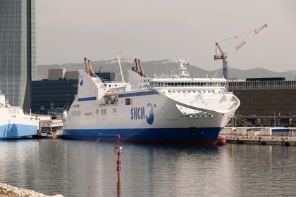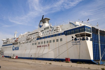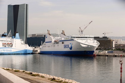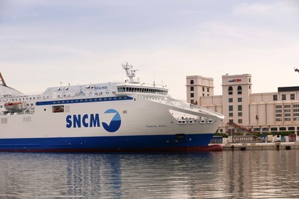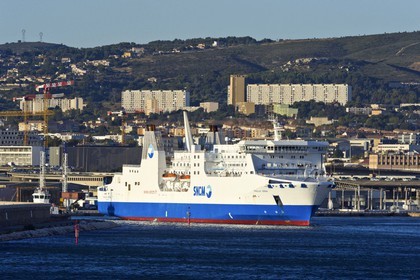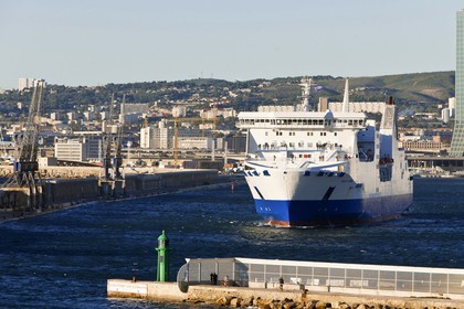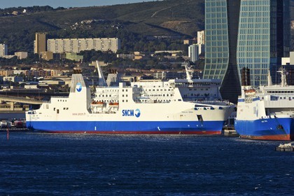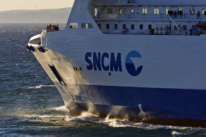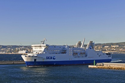 The ships of the SNCM company leaving the Port Autonome de Marseille, Bouches du Rhone, France SNCM, French ship Company