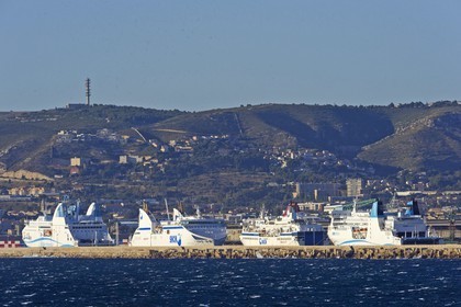 The ships of the SNCM company stationed in the Port Autonome de Marseille, Bouches du Rhone, France SNCM, French ship Company