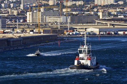 The tugboat, Mistral 8 in the Port Autonome de Marseille, Bouches du Rhone, France SNCM, French ship Company