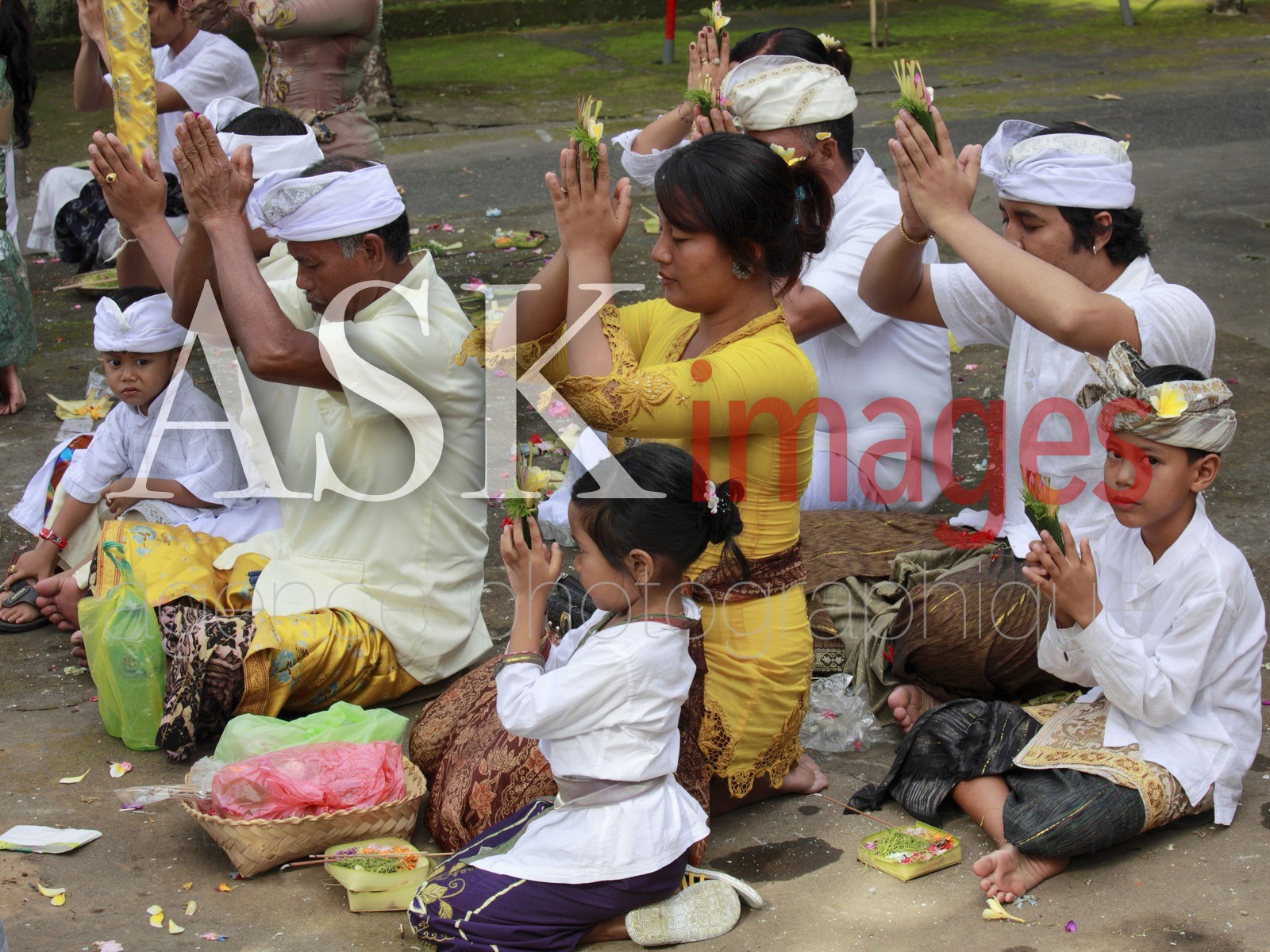 Indonesia, Bali, Mas, temple festival, people praying, odalan, Kuningan holiday,