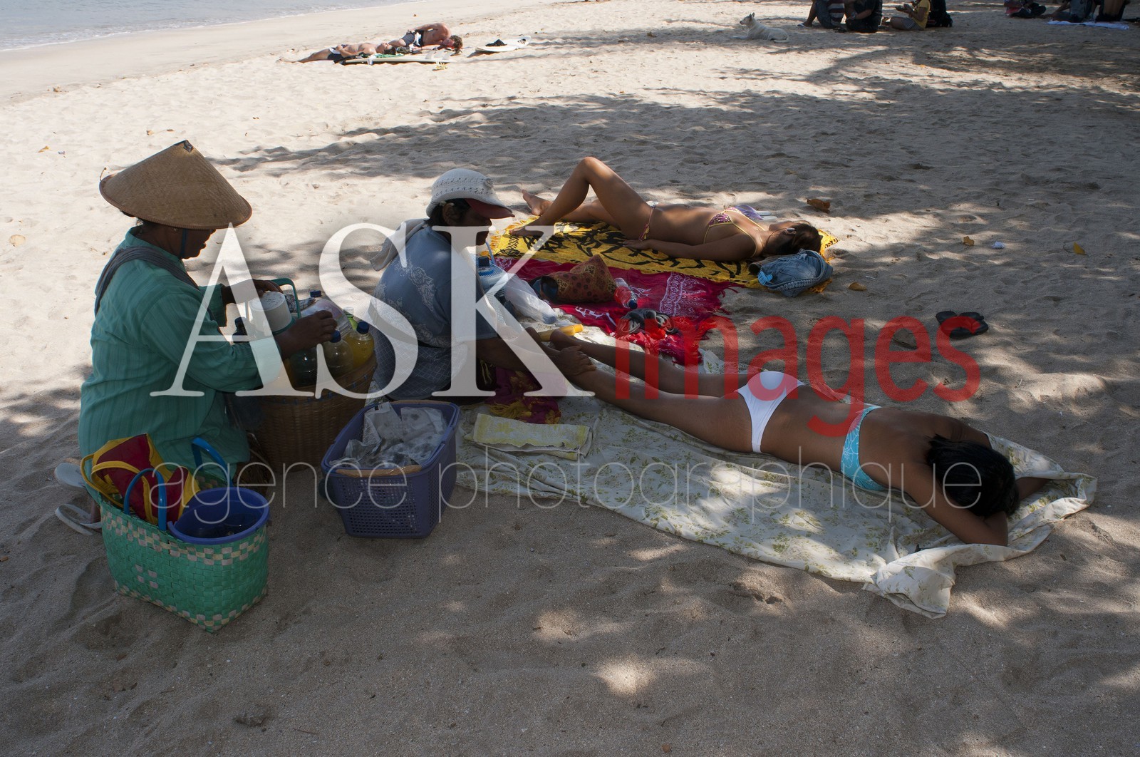 | Description | Indonesia, Bali, Kuta, beach, woman food massage. Sunbath on the beach of Kuta. Surfing lessons. Bali. Kuta is a coastal town in the south of the island of Lombok in Indonesia. |