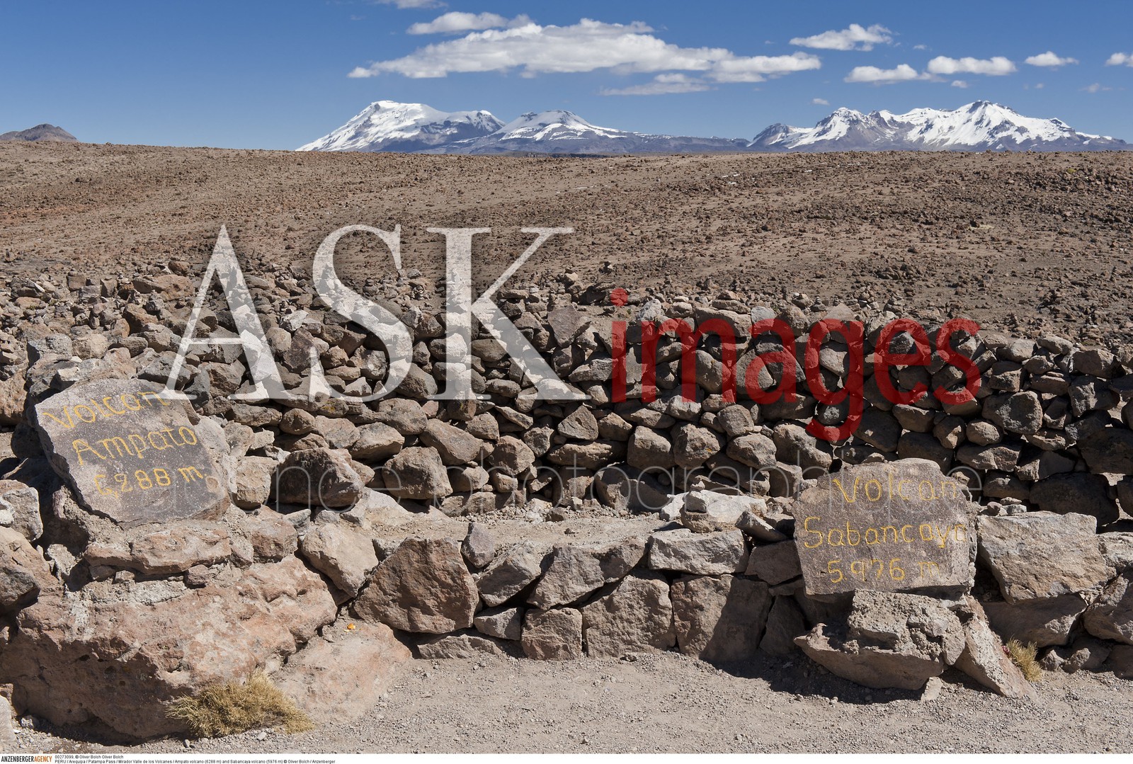 | Description | PERU / Arequipa / Patampa Pass / Mirador Valle de los Volcanes / Ampato volcano (6288 m) and Sabancaya volcano (5976 m)..© Oliver Bolch / Anzenberger |