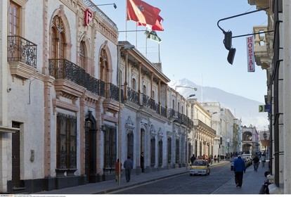 PERU / Arequipa / Historic town / Calle La Merced with volcano Misti in background..© Oliver Bolch / Anzenberger Perou *** Peru