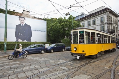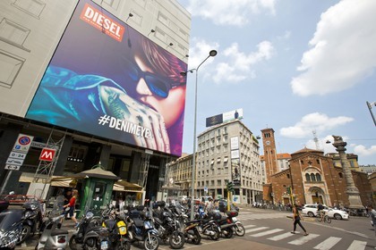 Street life, ad for mode, Milan, Italy