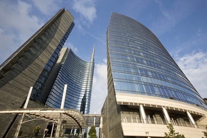 The Garibaldi and the Diamant towers in the Porto Nuova district, Milan, Italy