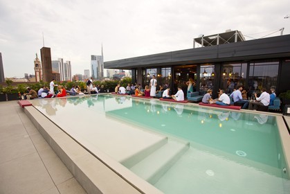 Modern bar with swimming pool, the Ceresio 7, Milan, Italy