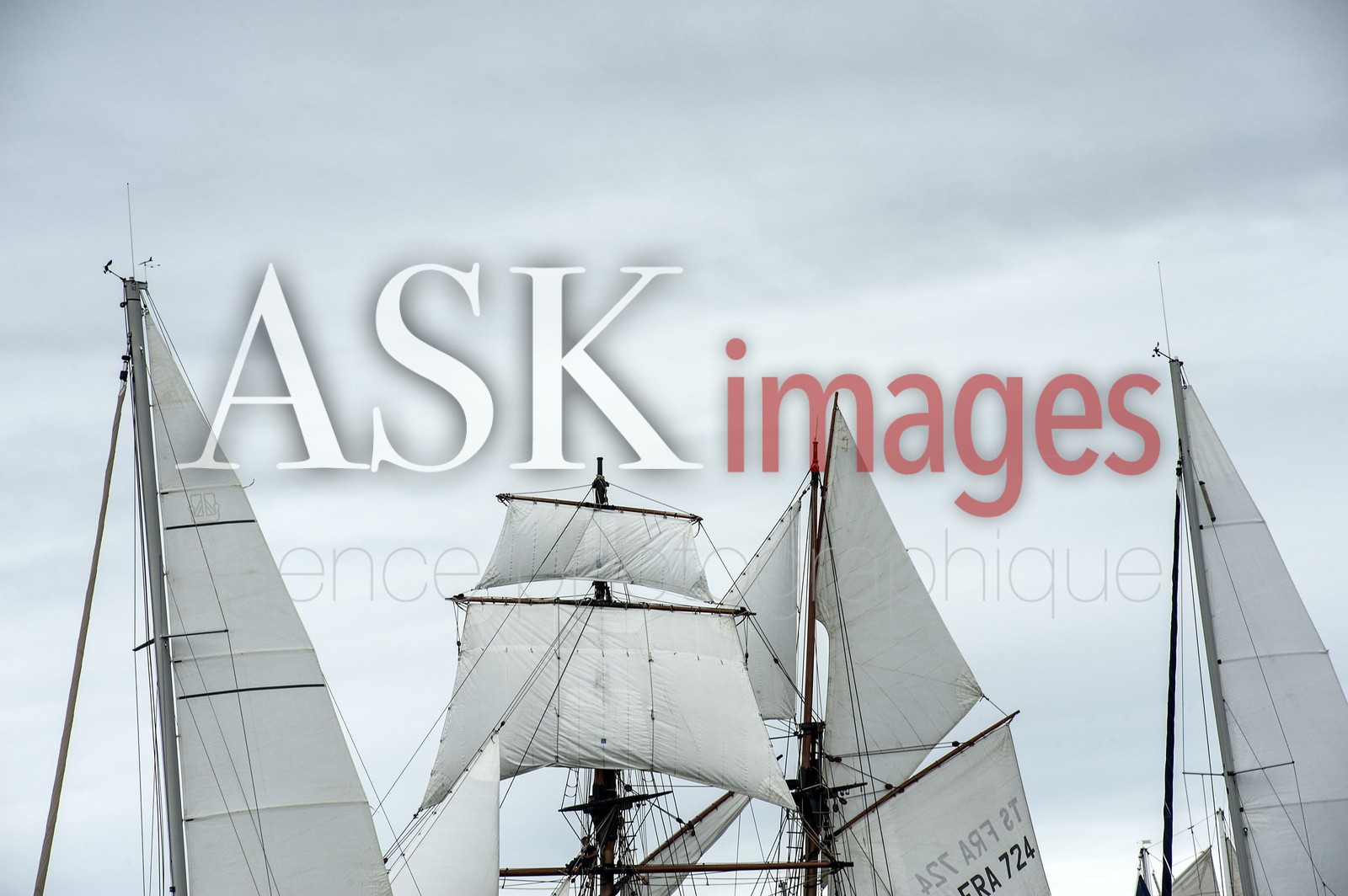 | Description | The three mats the Hermione, exact replica of the Lafayette 's boat in Goulet de Brest, Bretagne, France, August 2015 |