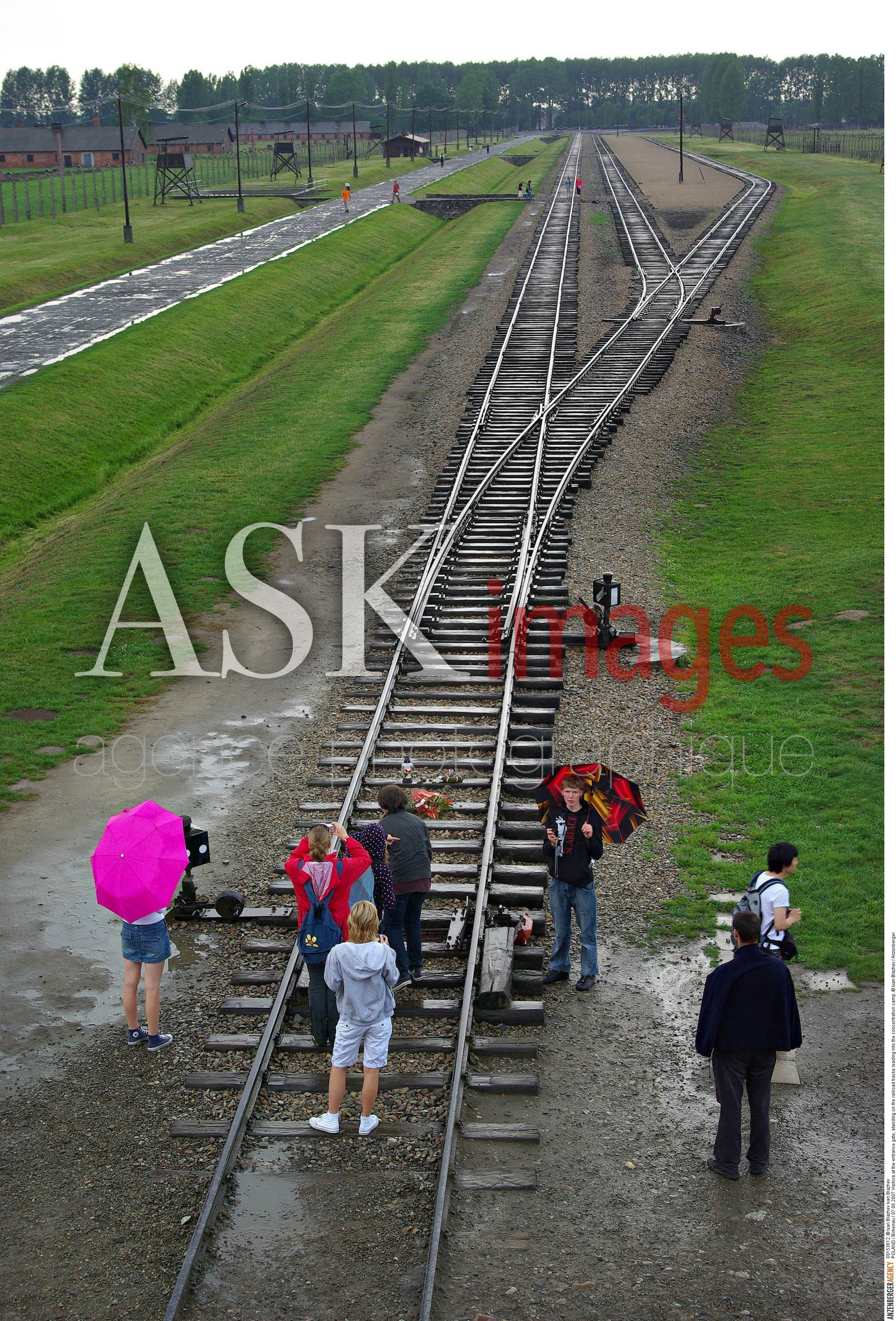 | Description | POLAND / Birkenau / Visitors at the entrance gate, standing on the railroad tracks leading into the concentration camp...© Ivan Blazhev / Anzenberger |