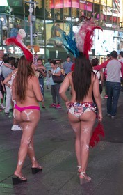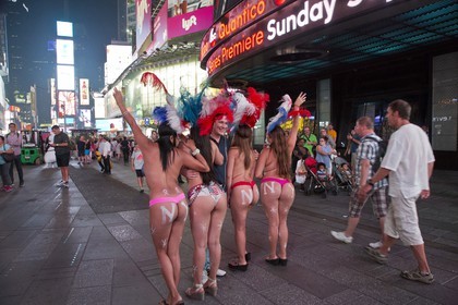 • The Desnudas of Time Square in New York, Dressed with a string and the american flag painted on their chest, these women pose with tourists for a few dollars, facing the growing phenomenon, the mayor of New York, Bill Basio took measures.