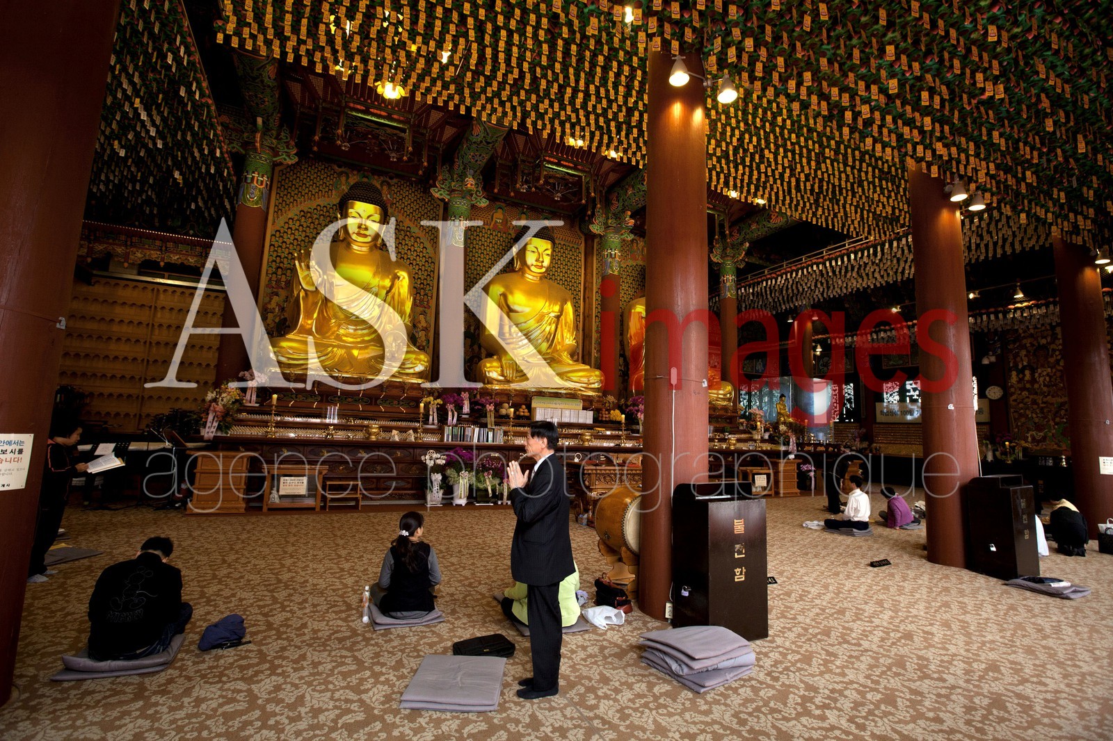 DescriptionSEOUL : COREE DU SUD *** Local Caption *** homme priant dans le temple de BONGEUNSA