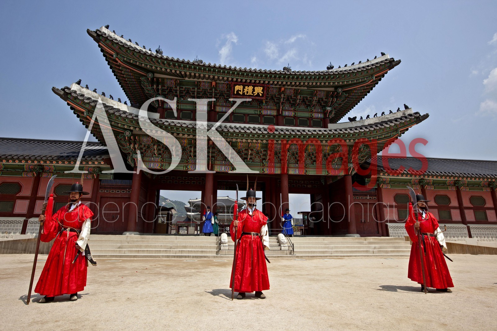 Description*** Local Caption *** Gardes devant la porte de GYEONGBOKGUNG