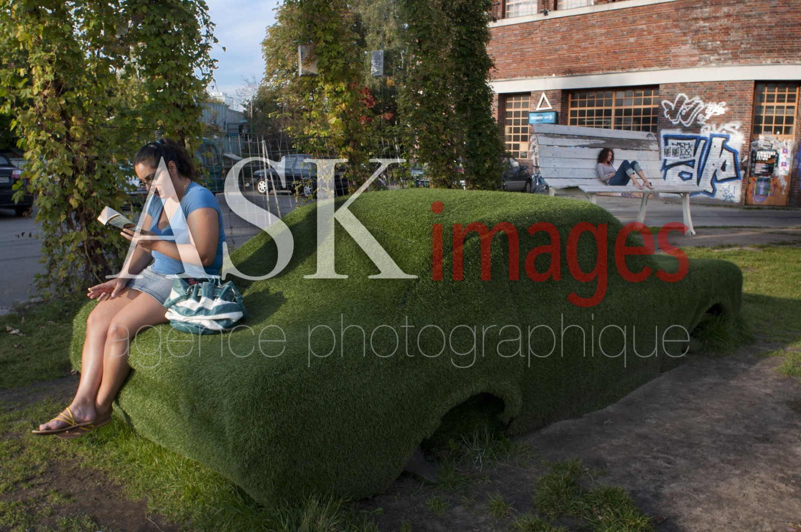 | Description | Berlin, Germany, on Garden of slowing fleet Arena Berlin. Oversized benches and cars covered in grass at Arena Berlin. Cultural events in a listed factory building along the former GDR border. Today, this 7,000 sqm venue at the edge of the Spree River is the site for countless concerts, fairs and parties |