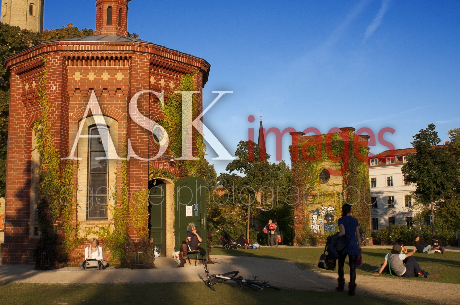 | Description | Prenzlauerberg District, garden around the former Wasserturm, 1873 brick water tower converted to an apartment. Wasserturm. Watertower in Berlin (Germany) was build up in 1877 and is the symbol for Prenzlauer Berg. |
