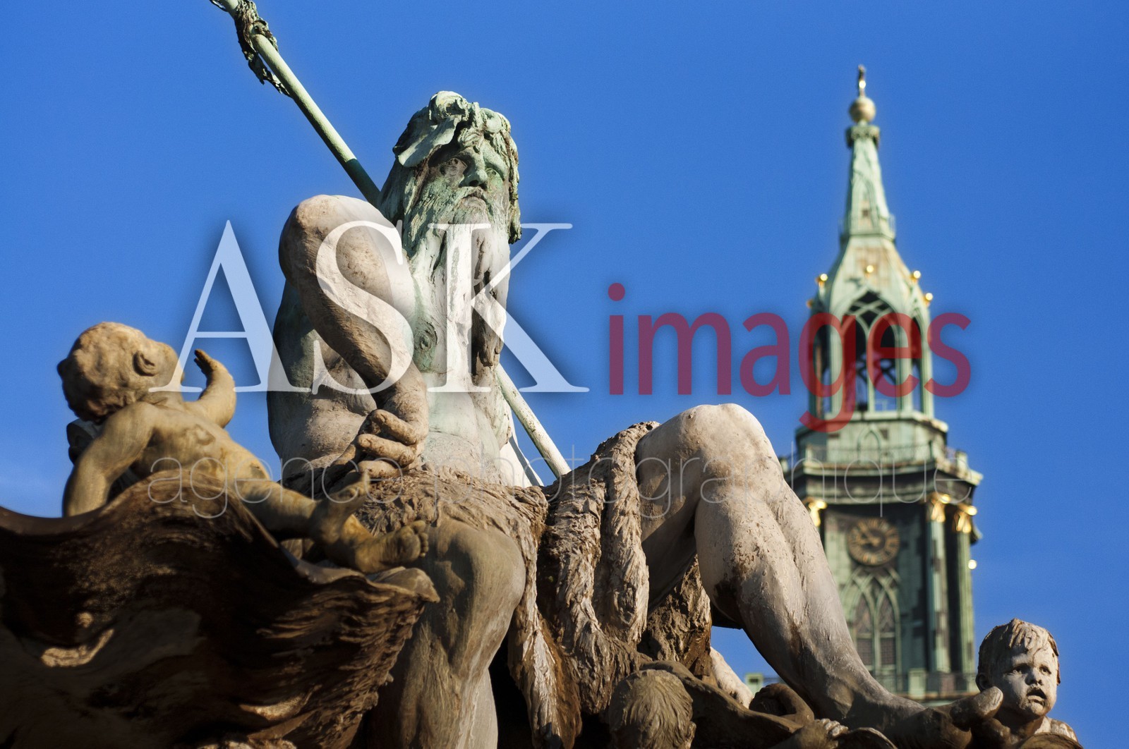 | Description | Neptunbrunnen Fountain, Marienkirche Church in the back, Alexanderplatz Square, Berlin-Mitte, Germany, Europe. The Neptune Fountain in Berlin was built in 1891 and was designed by Reinhold Begas. |
