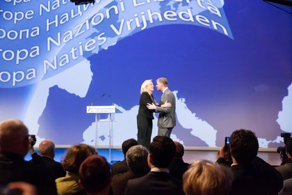 Marine Le Pen with Jiril Janecek President of Czesh OK Strana Parti during the Congress of the Front National, Lyon November 2014