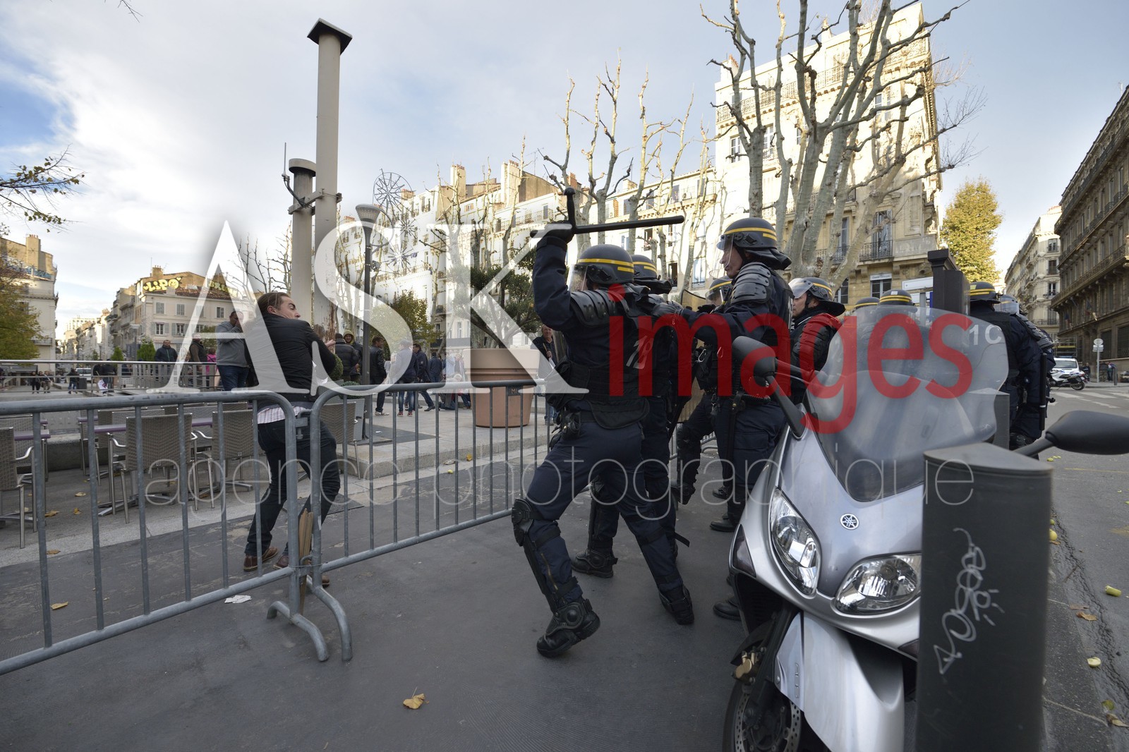 | Description | Marseille, Manifestation des Agriculteurs, Riziculteurs, Eleveurs ... à Marseille le mercredi 5 Novembre 2014 sur le vieux port et devant la préfecture. Les manifestants décident d’affronter les C R S mais ne parviendrons pas à franchir le cordon des forces de l'ordre. |