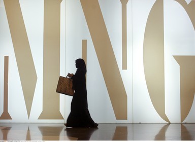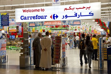 • UNITED ARAB EMIRATES, Dubai, Muslim woman walking by a fashion shop in Deira city centre shopping mall.