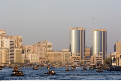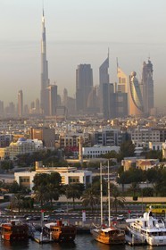 • UNITED ARAB EMIRATES, Dubai, View over Dubai Creek and Deira skyline.