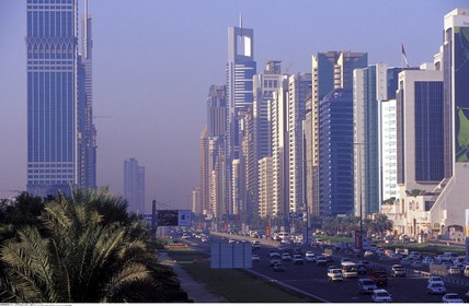 • UNITED ARAB EMIRATES, Dubai, Skyscrapers along Sheikh Zayed road.