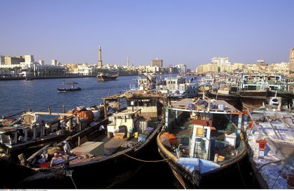 • UNITED ARAB EMIRATES, Dubai, Dhow Cargo boats docking at Dubai Creek.