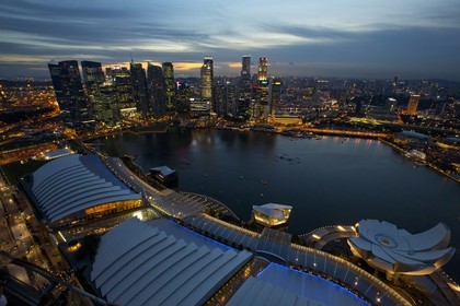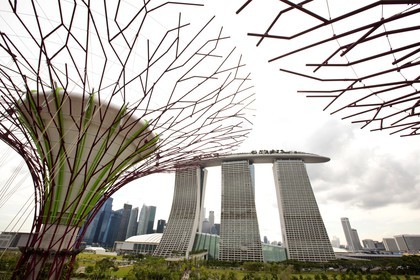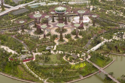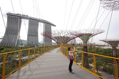 Singapore garden by the bay, a park of 101 hectares composed of three gardens in the south of the island of Singapore. and hotel Marina Bay Sands SINGAPOUR:LA CITE JARDIN