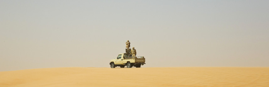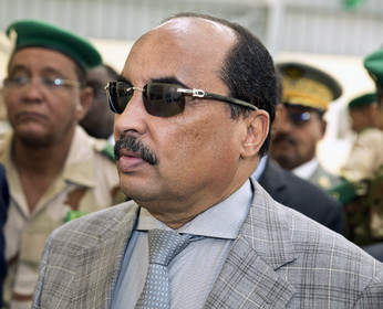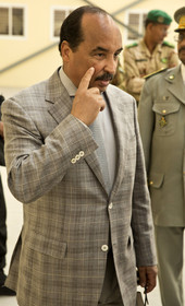 The president of Mauritania, Mohamed Ould Abdel Aziz visits the military base of Le Meye in mauritanian desert Mauritania, military base Le Mreye