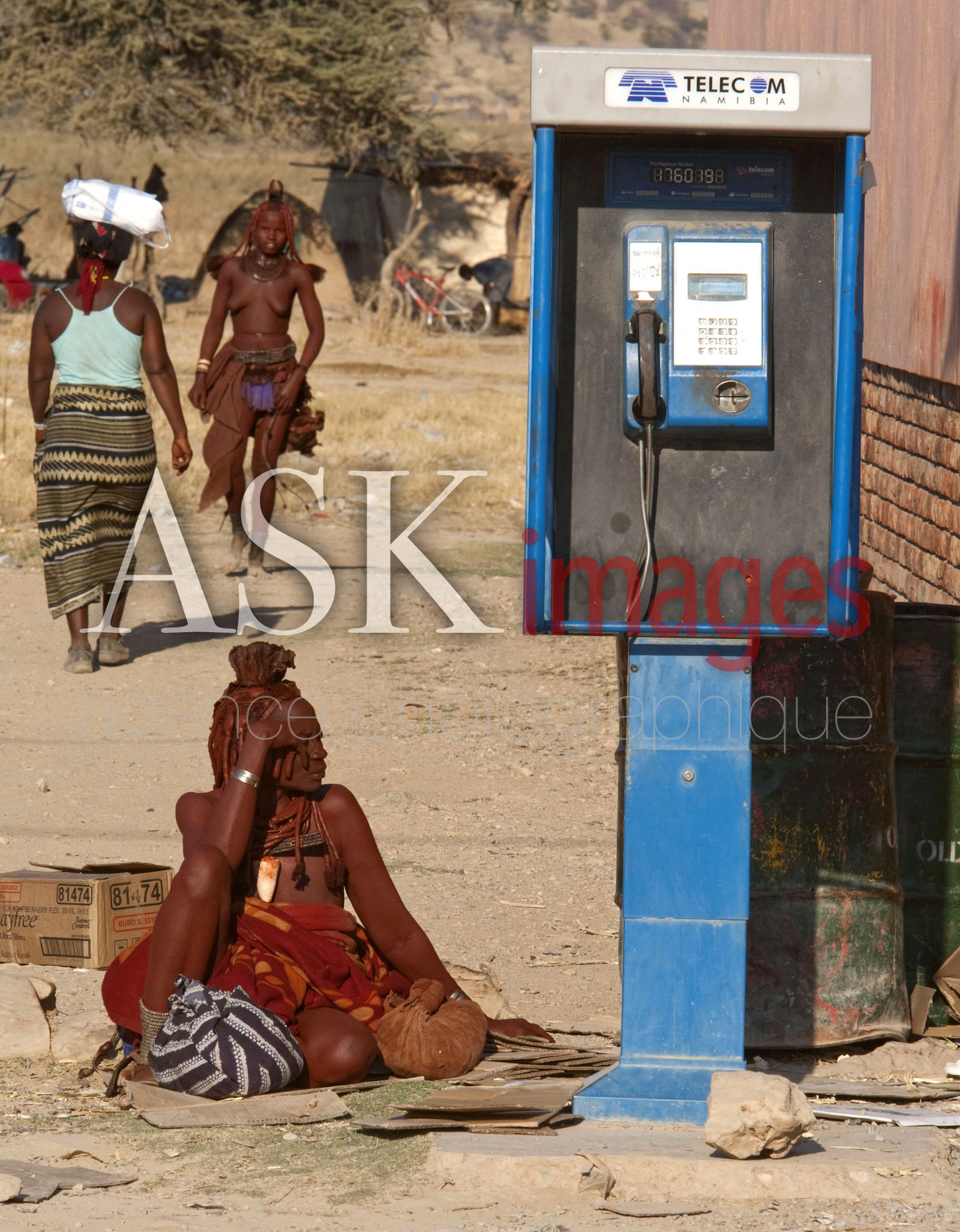 | Description | LES HIMBA sont un peuple de pasteurs nomades de Namibie. Ils se parent volontiers de colliers en cuir et d'anneaux en laiton et enduisent leur peau d'une pate a base de beurre et de bois rouge. Un telephone public. *** THE HIMBA are a nomadic people of Namibia. They adorn themselves with leather collars and brass rings and coat their skin with a paste made of butter and red wood, a phone box in the village, Namibia. |