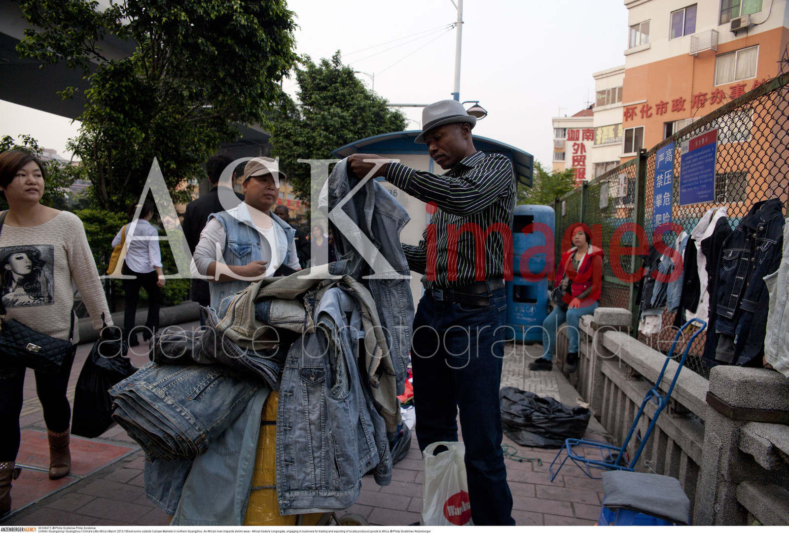 | Description | CHINA / Guangdong / Guangzhou / China's Little Africa / .Street scene outside Canaan Markets in northern Guangzhou. An African man inspects denim wear - African traders congregate, engaging in business for trading and exporting of locally produced goods to Africa...© Philip Gostelow / Anzenberger |