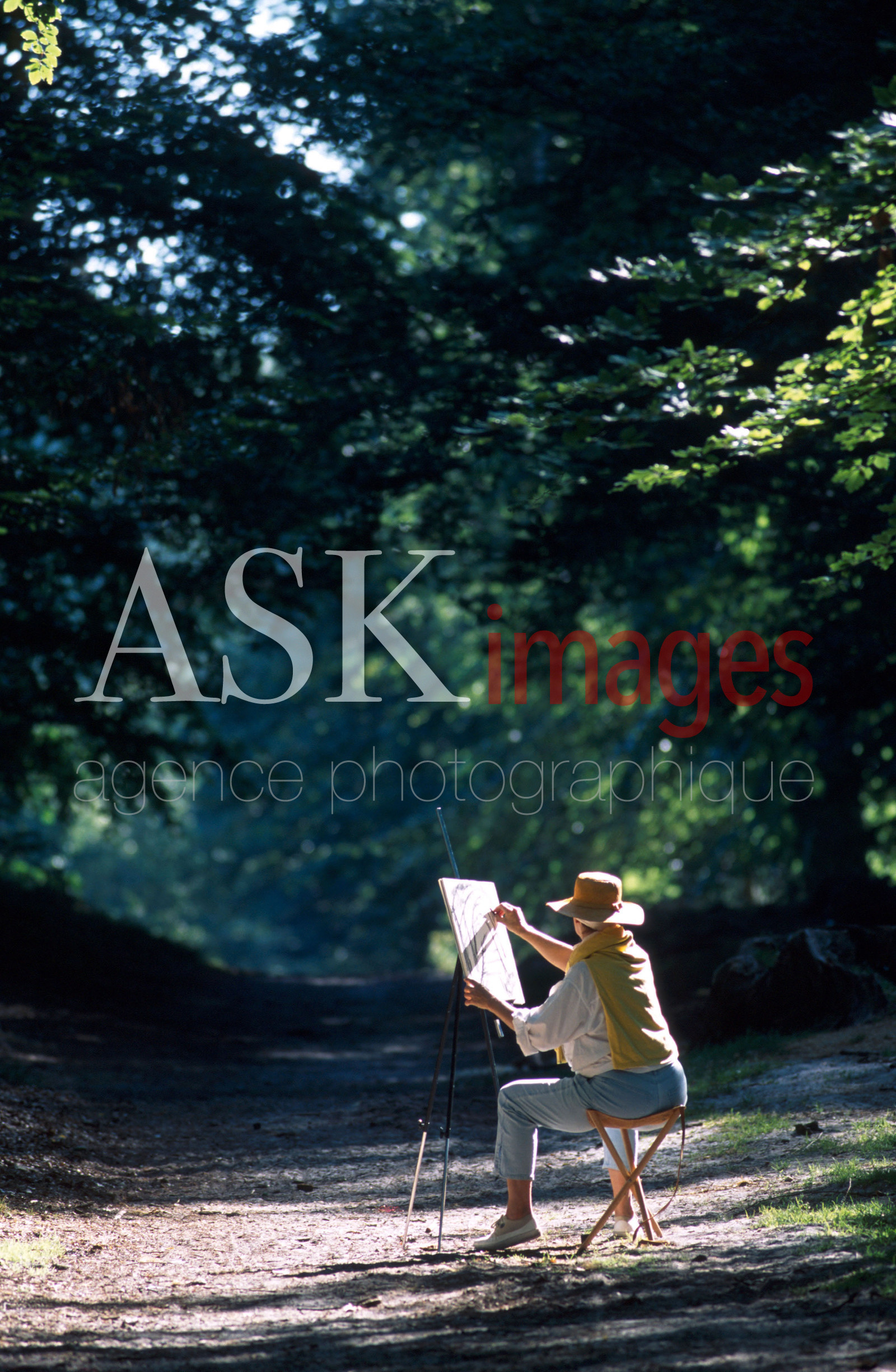 | Description | Barbizon, Fontainebleau forest, The painters' path, Female painter sketching with charcoal, Ile de France. |
