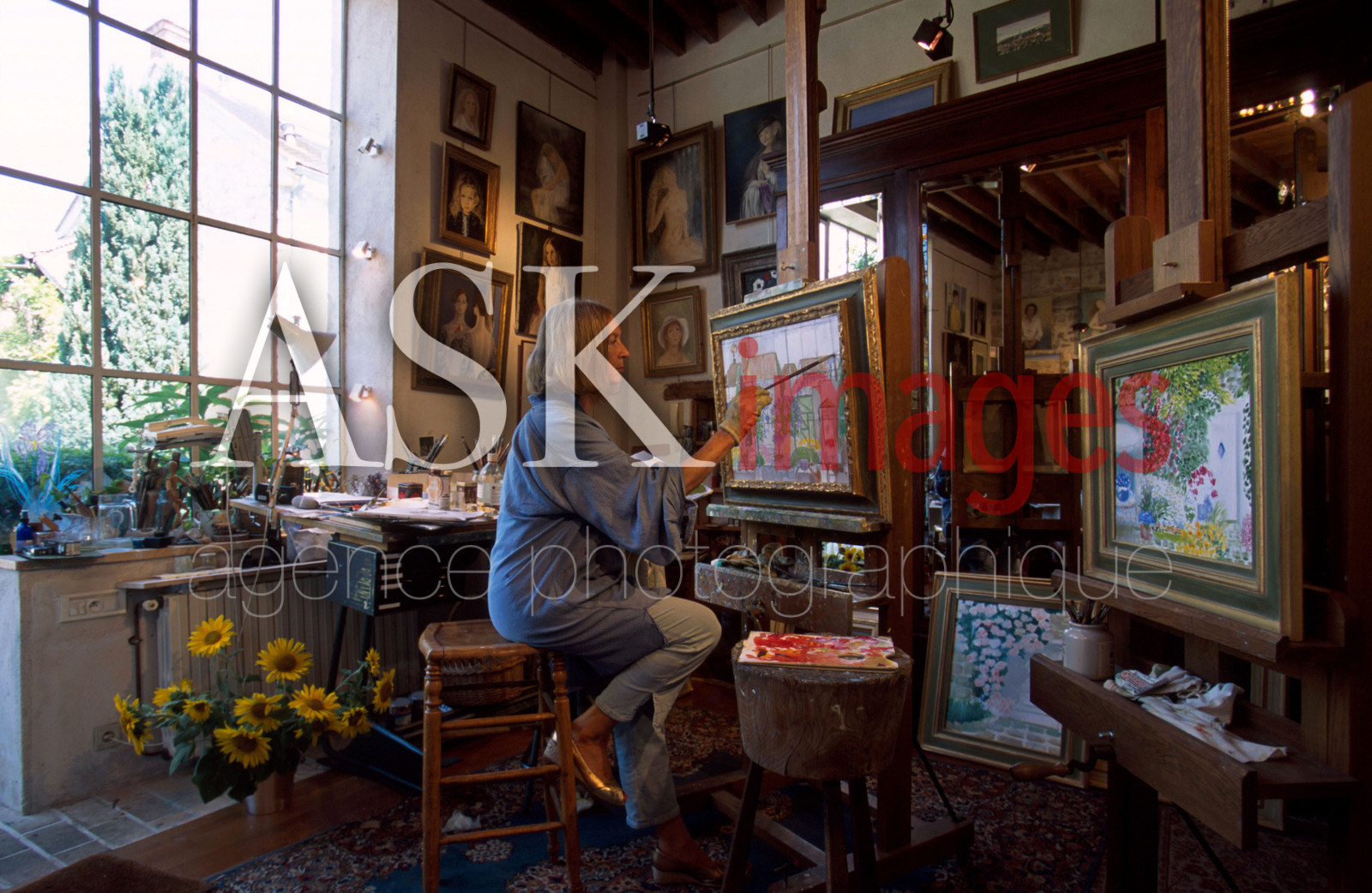 | Description | Barbizon, Erika Gage in her workshop, Ile de France. |