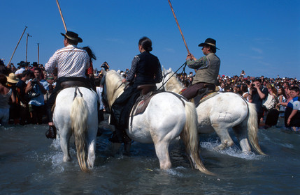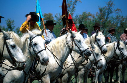 France, Camargue, Les Saintes Maries de la Mer, Gipsy festival, May, gardians (the cowherds). Camargue, Provence, France