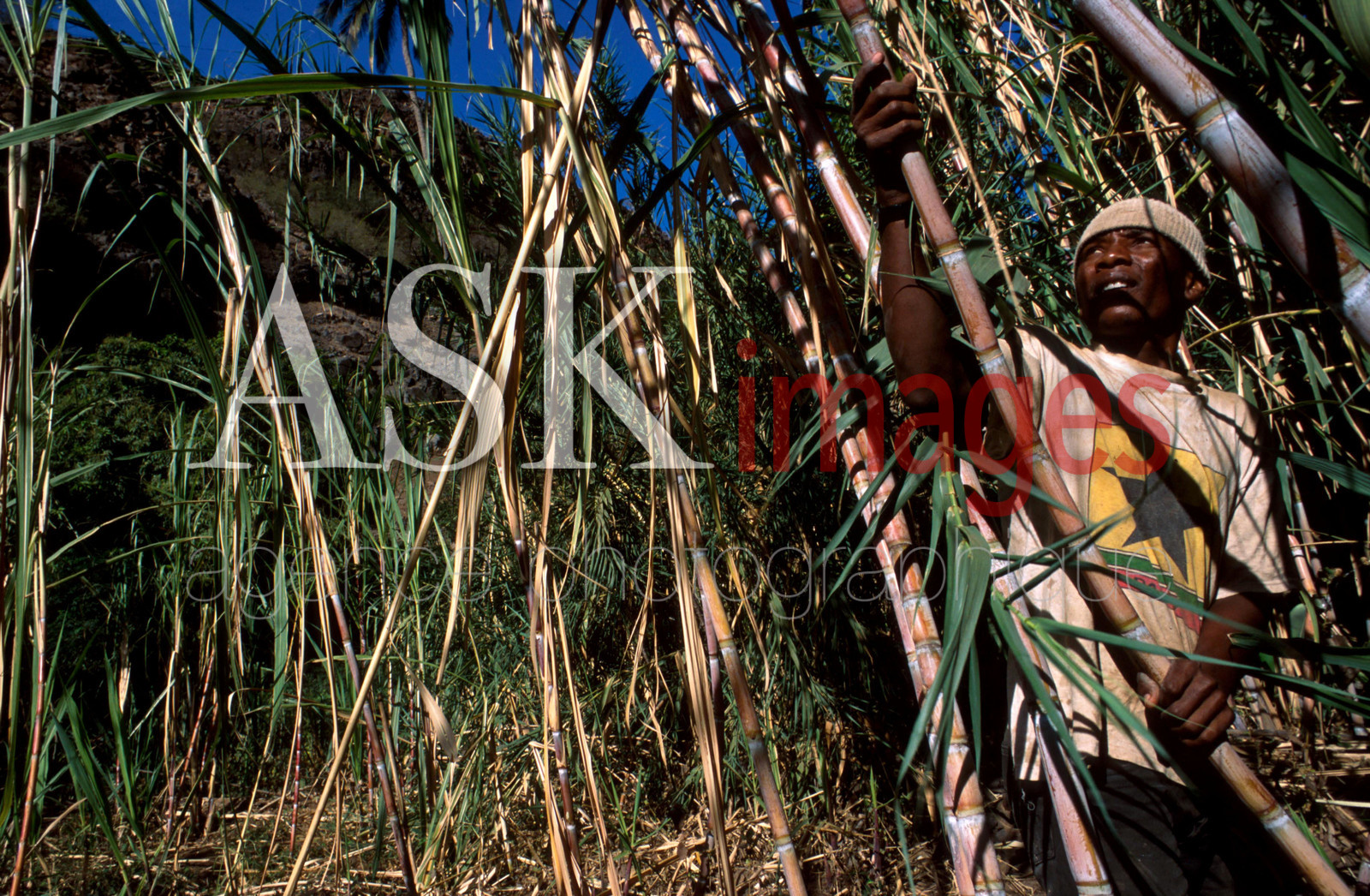 Sao Tiago, homme coupant la canne a sucre, Cap Vert