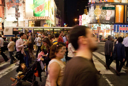 • USA, New York. The 7th avenue near by Times sqare at night, people crossing the junction.
