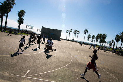 • USA, Los Angeles. Playing basketball in Venice beach.