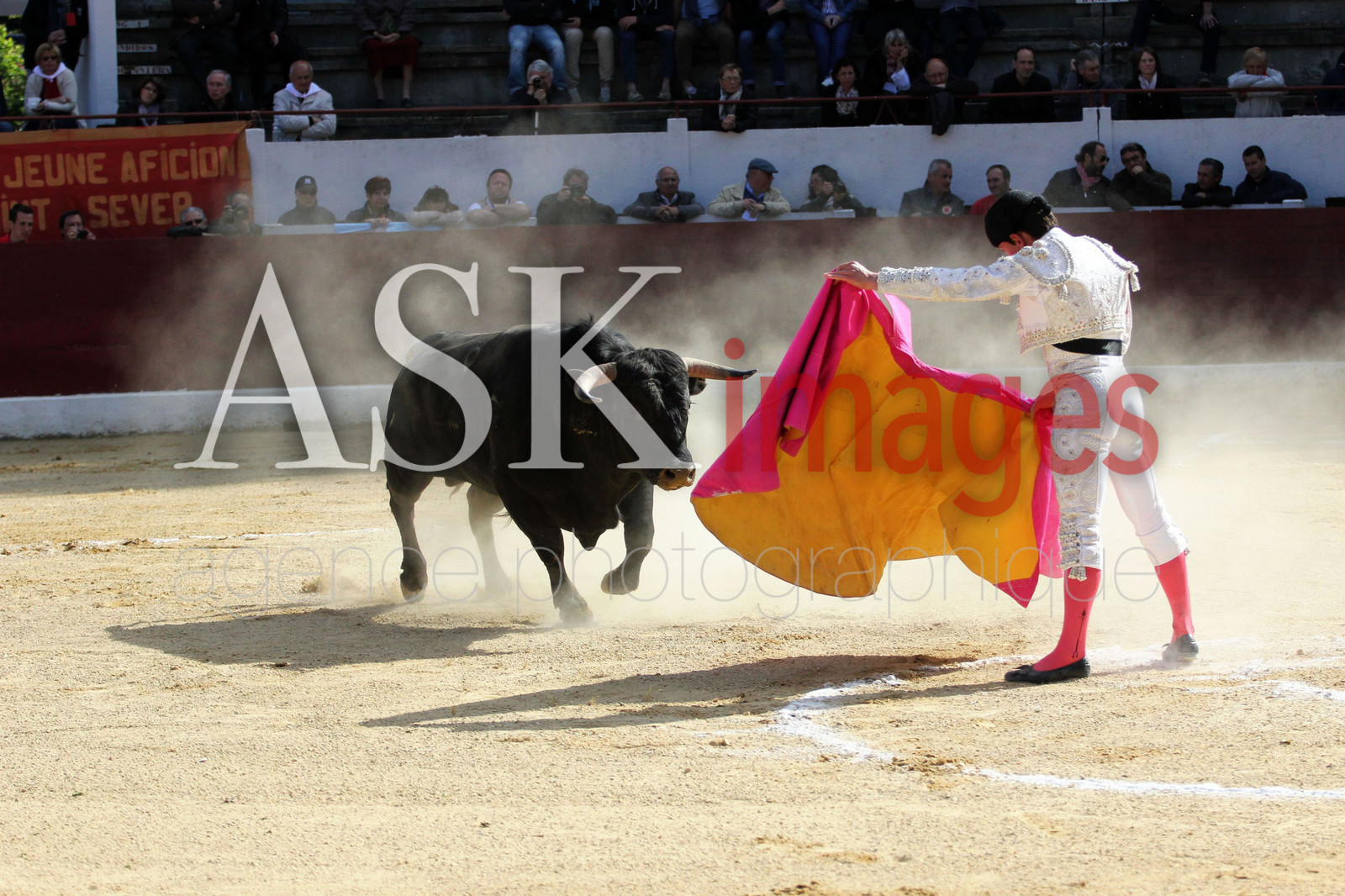 | Description | europe, france, aquitaine, landes, air sur l adour, le matador, alejandro consuero pendant les novilladas de la madeleine de aire sur l adour, qui realise des passes sur un taureau de trois ans qui pese tout de meme 500 Kg |