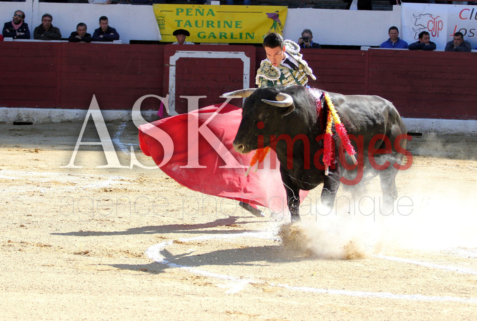 | Description | europe, france, aquitaine, landes, air sur l adour, le jeune matador, manolo vanegas pendant les novilladas de la madeleine de aire sur l adour, qui realise des passes sur un taureau de trois ans qui pese tout de meme 500 Kg, les banderilles sont planter dans le taureau |