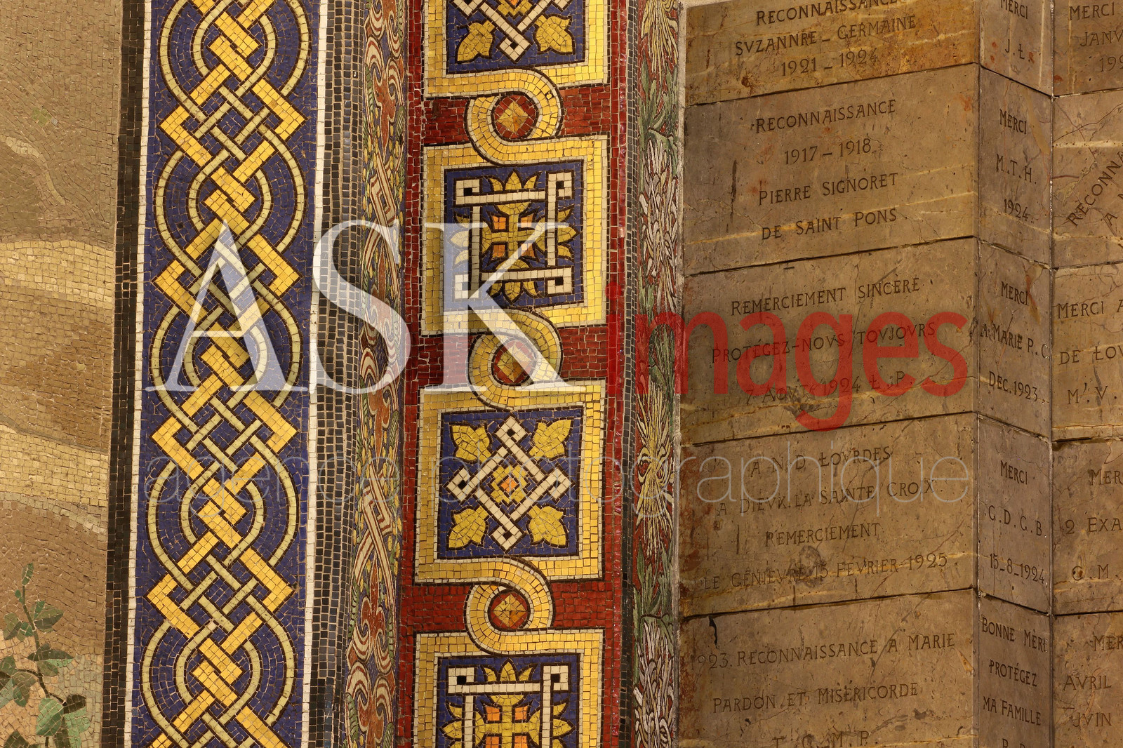 | Description | europe, occitanie, hautes pyrenees, lourdes, santuaire de lourdes, basilique notre dame du rosaire a un interieur dont les murs sont richement decore de mosaiques ou d'ex voto sous forme de plaques de remerciements. |