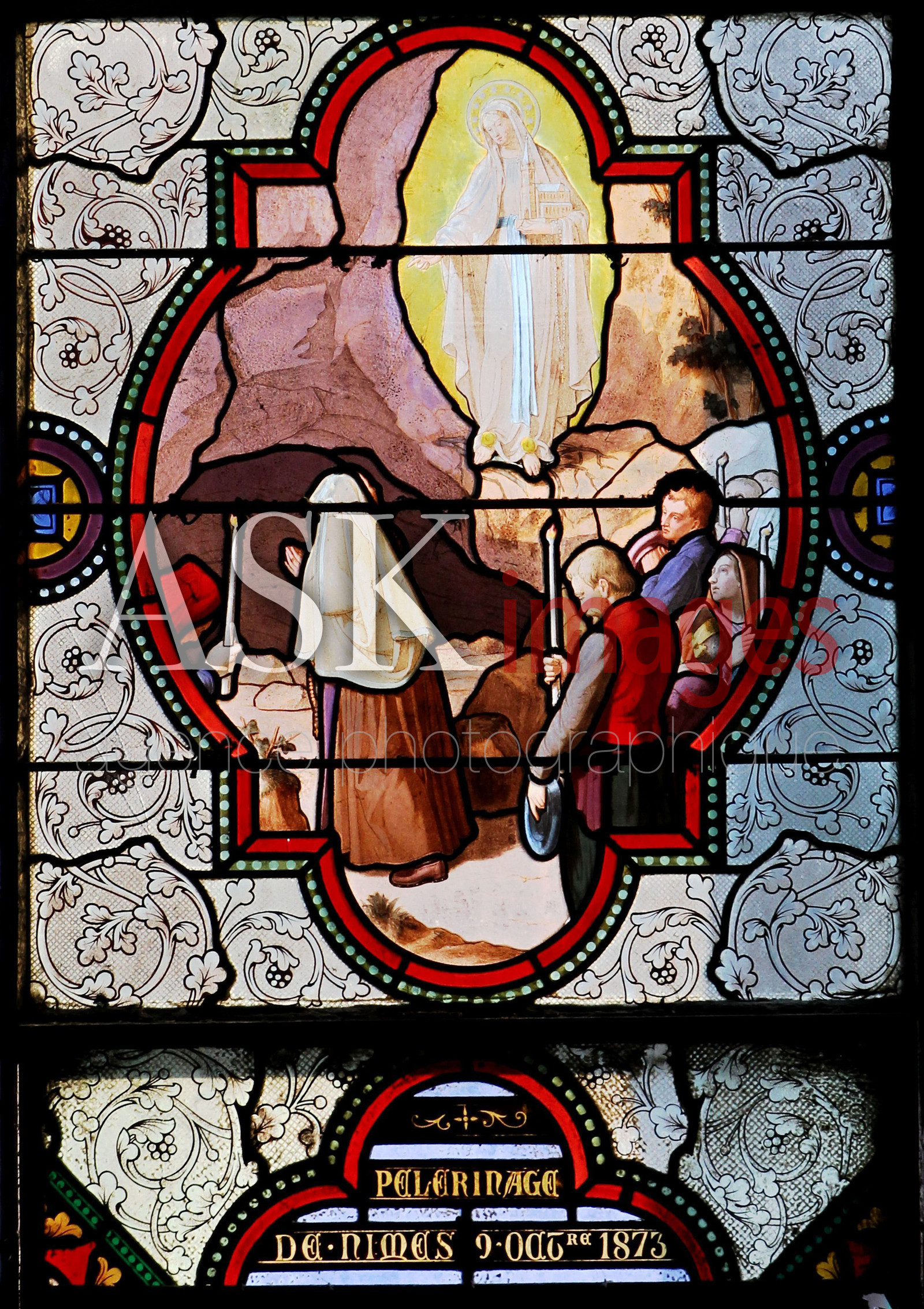 | Description | Europe, occitanie, hautes pyrenees, lourdes, basilique immaculee conception, les vitraux de la basilique retracent l histoire de la vierge marie, depuis les origines jusquía la proclamation du dogme de l immaculee conception par le pape pie IX en 1854 et les apparitions de lourdes en 1858, sur le vitrail l immaculee conception revele son identite a bernadette lors de la 16e apparition. |