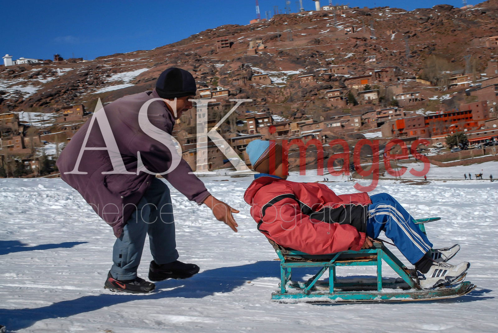 Sledging in the winter sports resort, Oukaïmden, or Oukaïmeden, Morocco