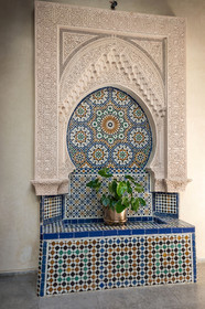 Fountain in Zellige of the mosque of Fez, typical Moroccan craft