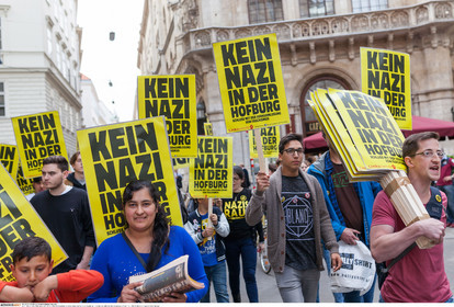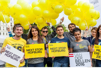 AUSTRIA / Vienna / Ballhausplatz / 19.05.2016 ..Demonstration zur Kundgebung "Kein rechtsextremer Burschenschafter als Bundespresident" am 19.5. 2016 ..© Markus Sepperer / Anzenberger Bundespresidentenwahl 2016 Van der Bellen Kampagne