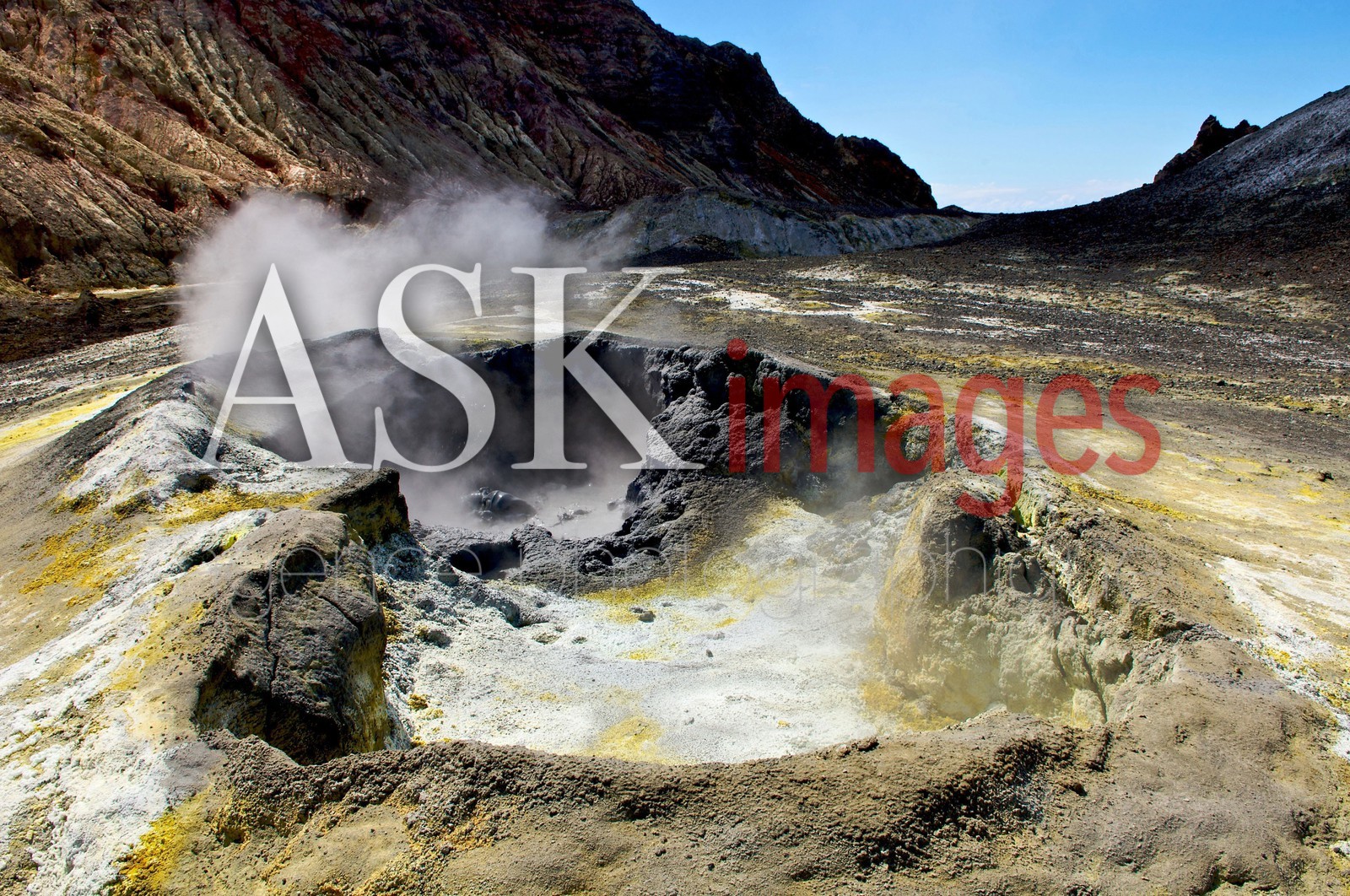 | Description | Mound of sulfur surrounded by fumaroles inside the crater of White Island volcano island, North Island, New Zealand, |