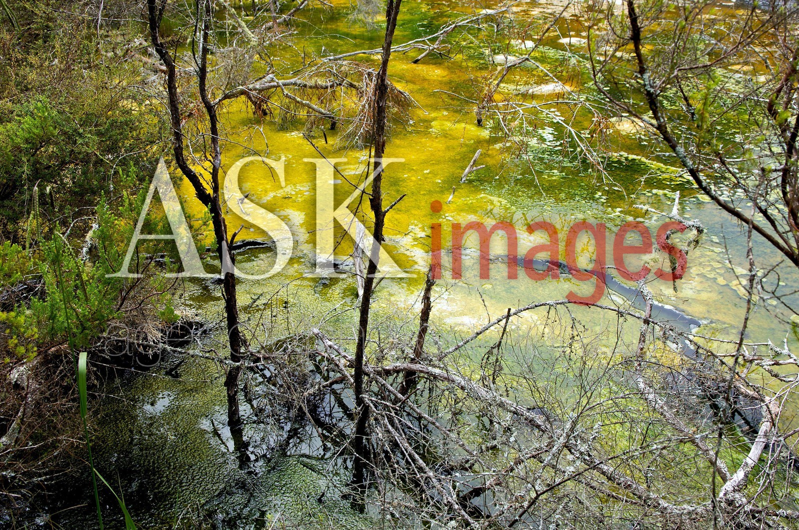 | Description | Coloured deposits on the surface of a pond in Waimangu Valley, Rotorua volcanic area, North Island, New Zealand |