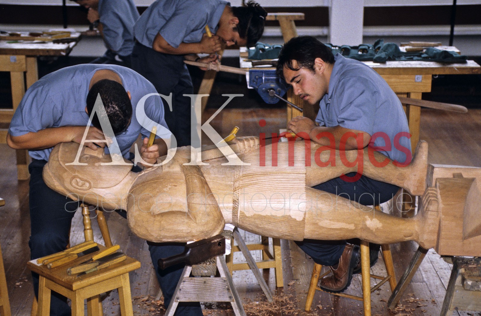 | Description | Young Maori sculptors, Maori Art Institut, Rotorua, North Island, New Zealand. |